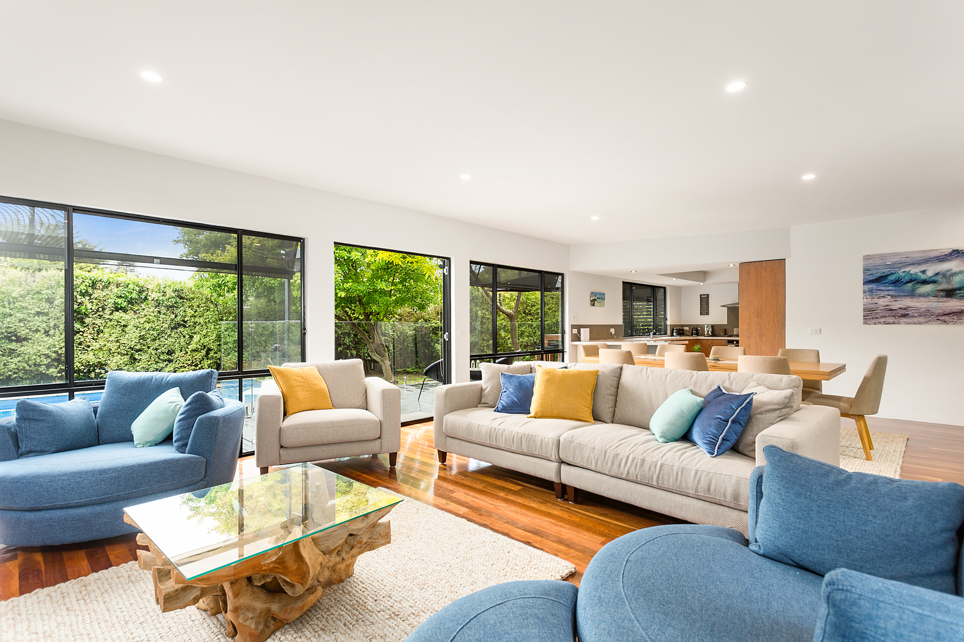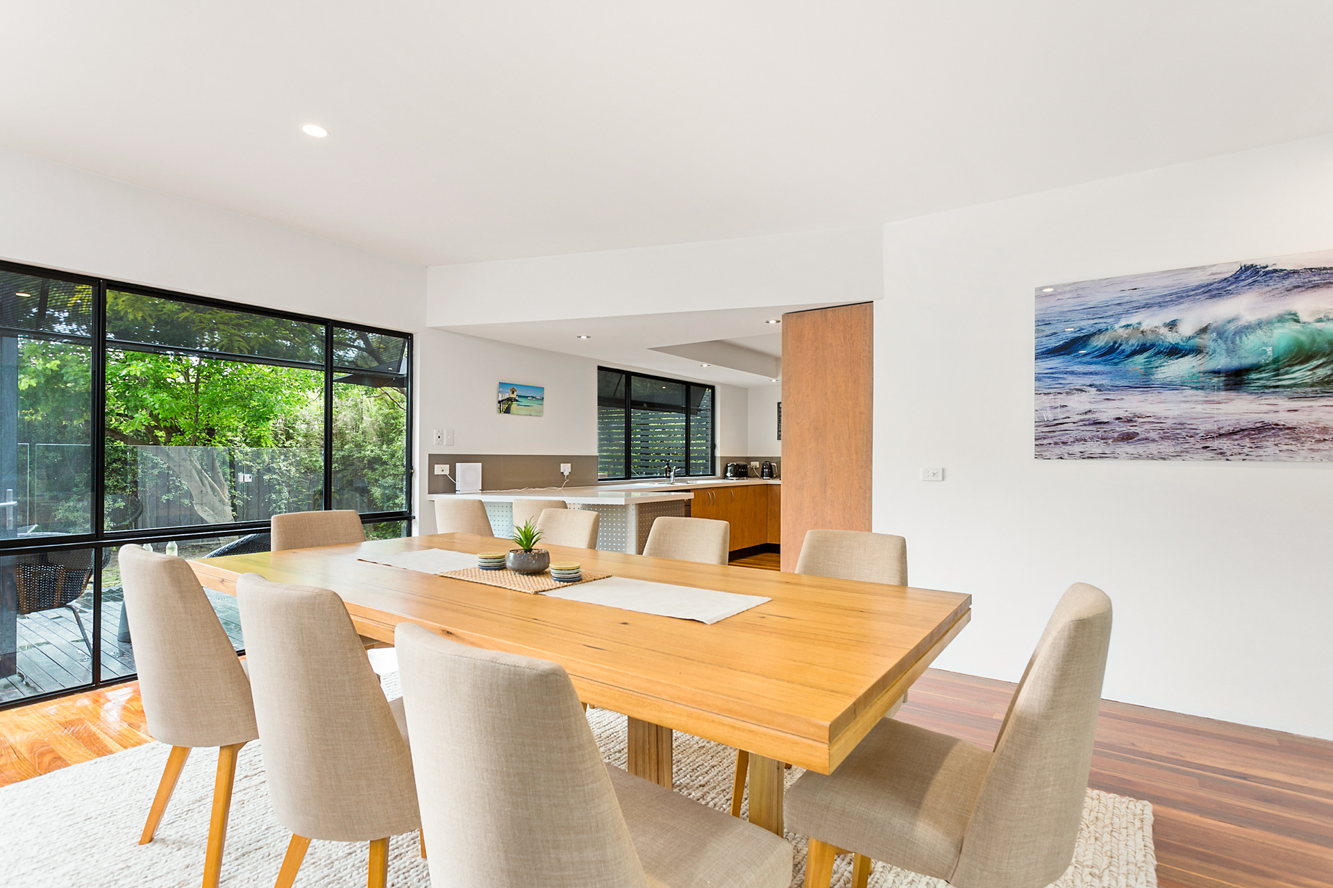 DESCRIPTIONRetreat 95 is the ideal in relaxed, indoor/outdoor living. The outdoor area is to envy with solar heated swimming pool, spa and relaxed seating areas so that you can enjoy the outdoor space. There is a large open planned kitchen, dining and living room that opens to a central outdoor alfresco room with an outdoor kitchen, comfy couches and a dining table. This spacious family home boasts 4 bedrooms, 3 bathrooms - one with a bath, 2 living rooms with large TVs, both with Foxtel IQ and DVD players, and Playstation4. There is also free WiFi. There's ducted heating/cooling throughout to make your stay comfortable at any time of year. There is a laundry with washing machine and clothes dryer, and you have use of the double garage which has a table tennis table, dart board and extra fridge. All of this within a short walk to the foreshore and the Sorrento Sailing Couta Club via Tuckey Track. BEDROOM CONFIGURATION - 4 BEDROOMS - SLEEP 10 PEOPLE 1st bedroom - king sized bed, WIR, ensuite, Telstra TV ie you can watch Netflix 2nd bedroom - king sized bed, BIR 3rd bedroom - queen sized bed, BIR, TV 4th bedroom - 2 x king single bunks ie sleeps 4 people Please note the solar heater in the pool is turned on during the months of November to April and requires the sun to be effective. We only rent to families or mature groups. Definitely no schoolies LINEN AND BATH TOWELS ARE INCLUDED FOR ALL BOOKINGS Short Stay Rental Accommodation Registration No: STRA0712/18