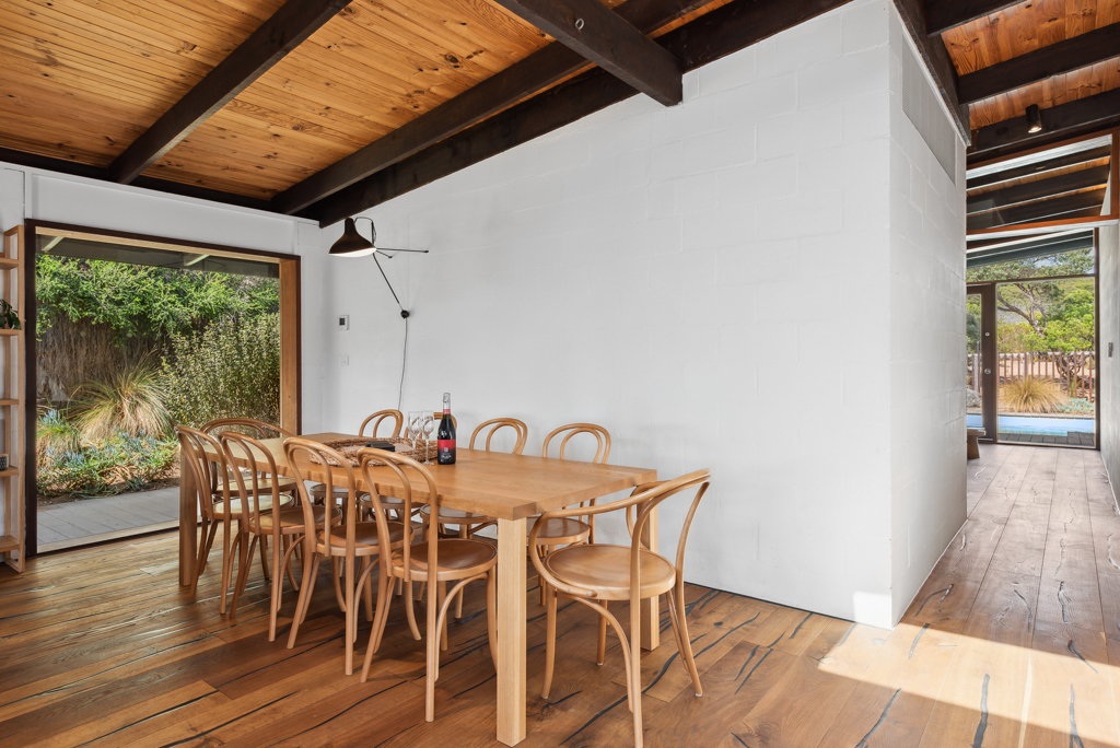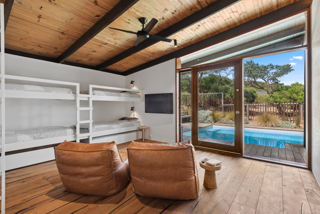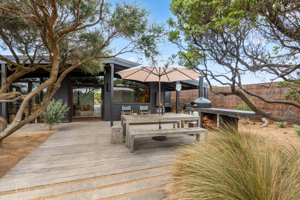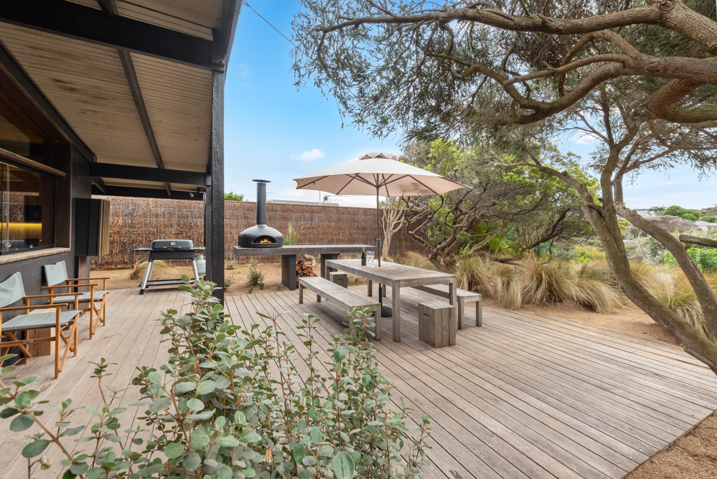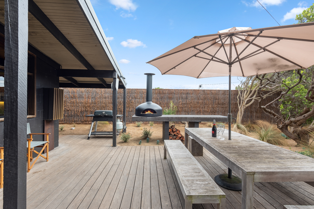 DESCRIPTION'Barefoot in Blairgowrie' has been stylishly renovated by the new owner and lovingly furnished and now presents as a beautiful, relaxed holiday home. It is perfect for indoor/outdoor living with the front yard which has been planted out to give you a peaceful space where you could have breakfast in the morning basking in the sun or laze and have a coffee while reading a book. There is an outdoor table, BBQ, wood fired pizza oven (BYO firewood if you'd like to use it) and a herb garden for your use. You will have the feeling of being completely immersed and connected to the natural coastal native landscape of the area. The back yard is where you can relax beside the sparkling solar heated swimming pool which overlooks the national park and listen to the ocean waves rolling in. There's also a hot/cold outdoor shower. There is cooling that flows throughout the house and ceiling fans in the living room and two of the bedrooms. Whilst this is ideal in summer it is also a perfect winter getaway with heating and a lovely wood fired heater. There are two bathrooms (one of the bathrooms is accessible externally). The modern kitchen has an island bench to give you more space, a coffee machine and dishwasher and a large dining table with 8 seats. There is free WiFi. The property backs onto the Blairgowrie back beach and is just 300 metres to the famous Bridgewater Bay Beach and is a great location to base yourself for the many beach walking trails. It is just a 5 minute drive to the Blairgowrie shops and front beach and is a 10 minute drive to the Peninsula Hot Springs and is the perfect gateway to the Peninsula wineries. BEDROOM LAYOUT - 3 BEDROOMS - SLEEPS 9 PEOPLE 1st bedroom - queen sized bed, BIR, ceiling fan, TV and opens out to the pool. 2nd bedroom - queen sized bed, BIR, ceiling fan 3rd bedroom - 2 single bunks and a trundle bed under one of the bunks (ie sleeps 5), there is a TV and PlayStation 3. This doubles as a kids retreat/rumpus room. This room opens out to the pool. Please note the solar heater in the pool is turned on during the months of November to April and requires the sun to be effective. The pool has a permanent cover put on it during the winter months while it is really cold. We only rent to families and mature groups. Sorry, no schoolies. We do not permit pets. LINEN AND BATH TOWELS ARE INCLUDED FOR ALL BOOKINGS (surcharge applies) Short Stay Rental Accommodation Registration No: STRA0384/23