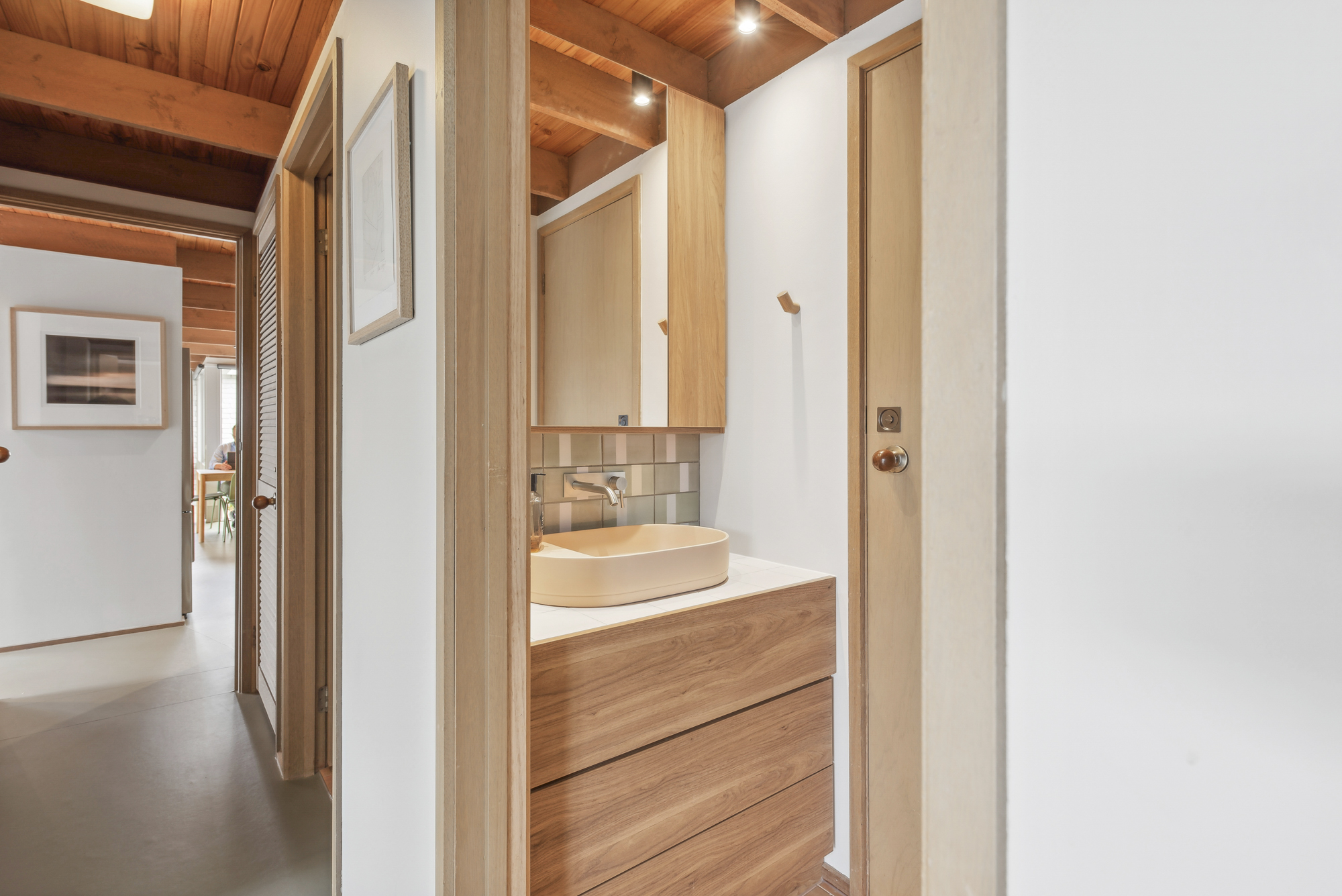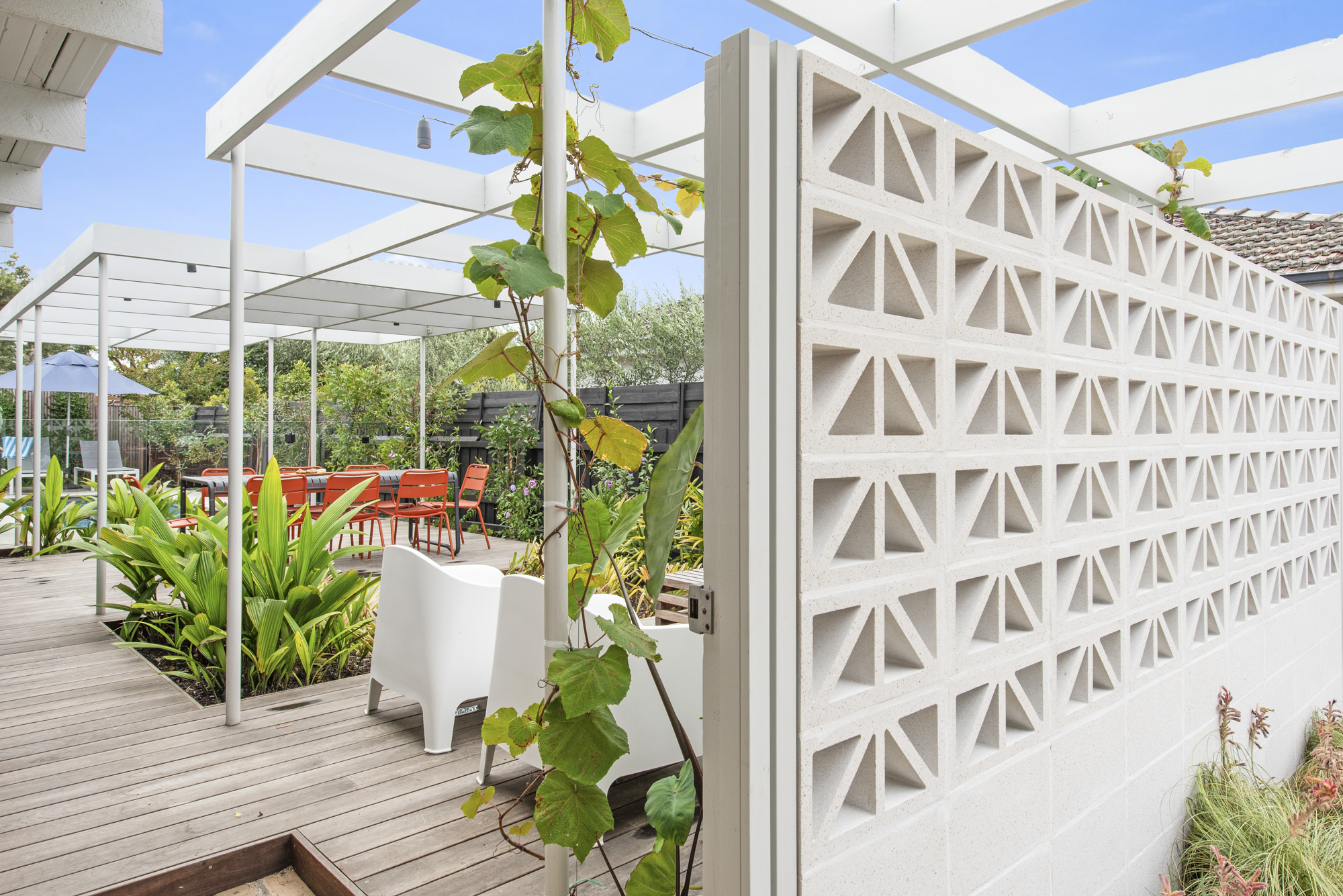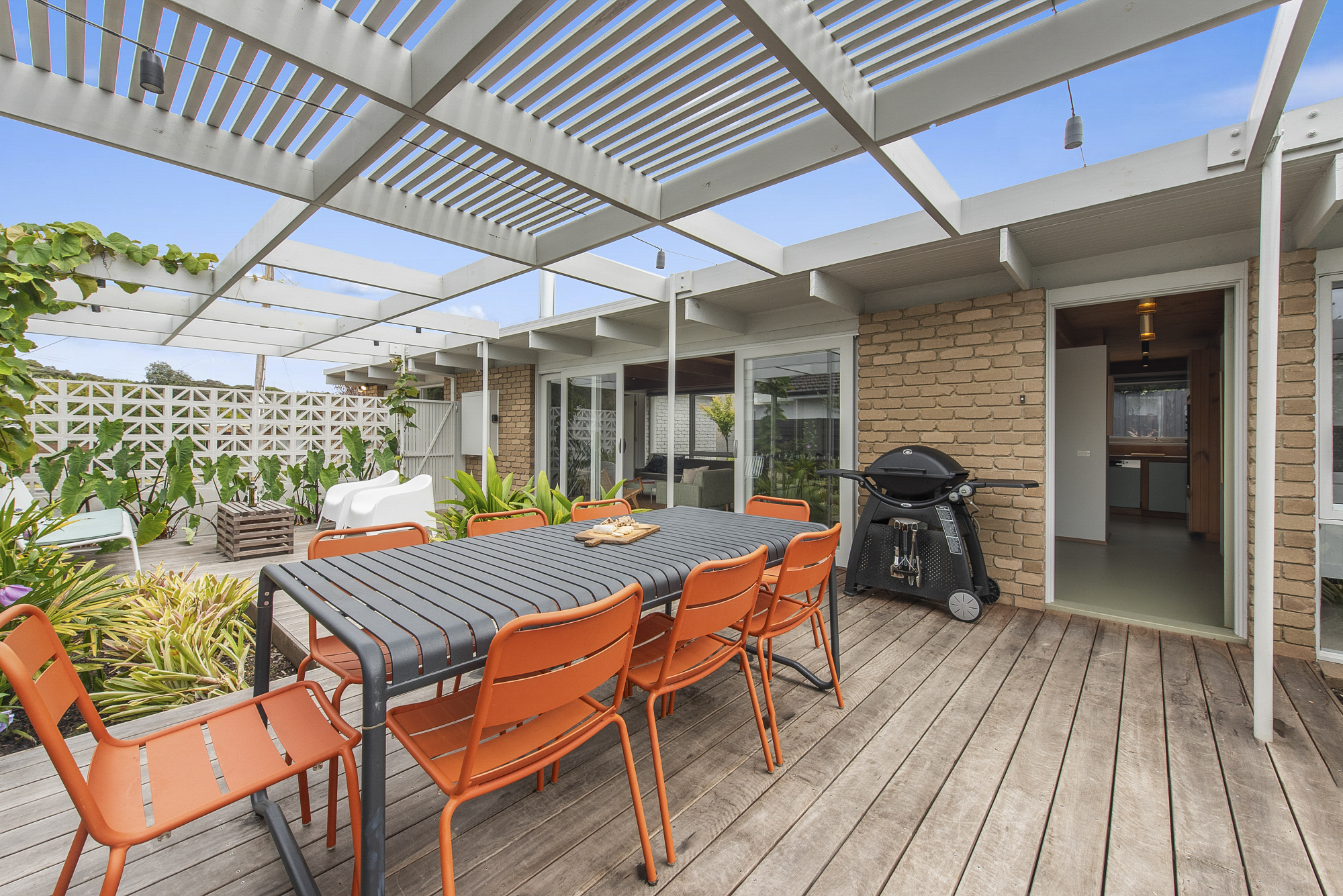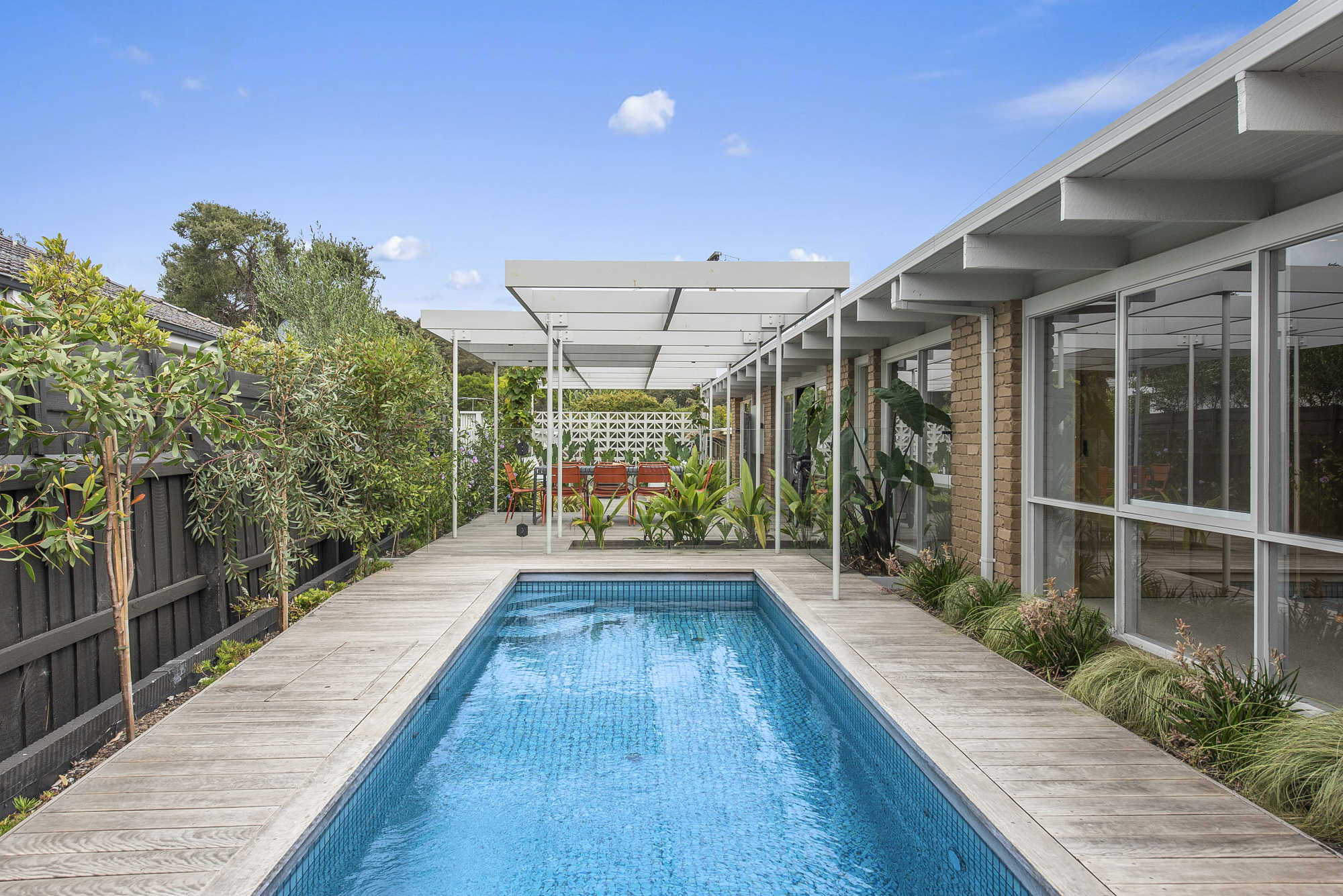 DESCRIPTIONDolphin has been cleverly designed so that most of the house looks out on the pool and lush garden deck. Floor to ceiling windows mean every room is light-filled and connected to the landscaped garden. Our open, calm space has been lovingly restored while retaining its 1970s spirit of easy family living. We have filled it with furniture we love from Australian designers and vintage posters and prints in every room. You enter straight into the open-plan living and dining area, with a wood stove and terracotta-tiled hearth, generous dining table for eight overlooking an internal courtyard, air-conditioning and study or work-from-home nook. The kitchen has been updated with brand new appliances including an induction cooktop, dishwasher, coffee machine and microwave. Sleeping up to 11 guests, there are 4 bedrooms, 2 living spaces, 2 bathrooms (one with a bath), a powder-room and laundry fully equipped with washer and dryer. There is also WiFi throughout. The fully fenced outdoor area is a lovely sun trap with lush planting and an expansive deck around an aquamarine tiled swimming pool and outdoor shower. There is a dining table for eight, a Weber BBQ and a fire-pit for atmospheric winter nights. Dolphin is on the border of Rye and Blairgowrie, in a quiet back street. It is a short walk to the protected bay beach (900m) and Blairgowrie village (1.8k) which has an excellent local IGA, Meatheath butcher, pharmacy and cafes/restaurants including Beachbox for low-key sandwiches, burgers and shakes; Bonnie for stylish breakfasts and evening cocktails and meals; and Blairgowrie Cafe for its famous (and very very good!) ‘ferger burger’. Small dogs are welcome on request. We rent only to families or mature groups. Please note the solar heater in the pool is turned on during the months of November to April and requires the sun to be effective. Visit us on Insta: @dolphin__house ** Due to the strict Shire regulations, we don't accept any bookings for parties, functions, weddings or events, bucks/hens bookings or schoolies groups. We only rent to families i.e. adults and children or smaller mature groups **