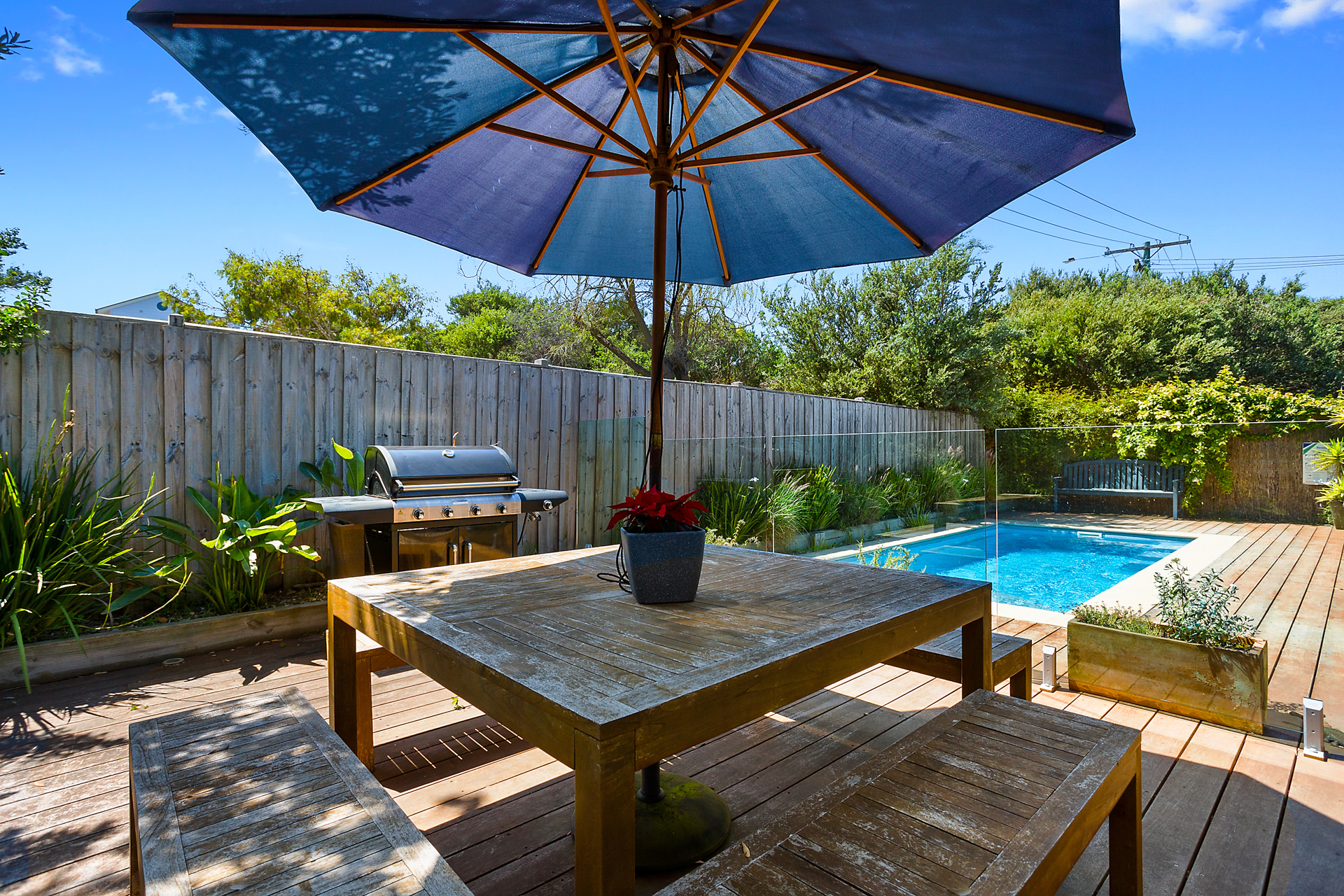 DESCRIPTION** THIS POPULAR PROPERTY HAS NOW INSTALLED ALL YEAR ROUND POOL HEATING!!! ** Imagine the whole family being able to swim during winter (set to 32 degrees) as well as enjoying the pool in summer. 'Sea Brim' is the ideal in relaxed, beachside living. This fantastic pet friendly family home has 4 bedrooms, 2 living rooms (one Smart TV with Netflix, Foxtel Now and Disney Plus), an open planned kitchen (microwave, coffee machine, soda stream and dishwasher) with a large dining table and sitting room with TV. All of this is set around a gorgeous outdoor sitting area, which is perfect for reading the newspaper and capturing the sun. There is also free WiFi.